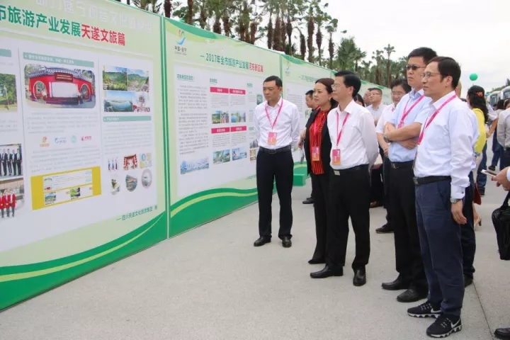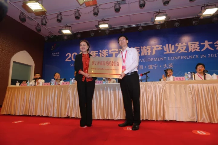 会前,参会领导和嘉宾通过展板详细了解了遂宁市及各县(区)园区旅游产业发展情况,参观了大英县浪漫地中海建设现场。会上,市旅游局、市发改委、大英县、船山区、射洪县作了交流发言;表彰了2016年—2017年期间全市旅游工作先进集体和个人;举行了遂宁市旅游发展委员会授牌仪式;交接了会旗,2018年全市旅游产业发展大会将由河东新区承办。