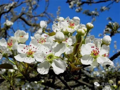 “忽如一夜春风来,千树万树梨花开”。这里的“梨花”是比喻“雪”的,而现在春风真的来了,梨花也真的开了。梨花美而不娇、秀而不媚,白得如雪一般晶莹,是春天赏花的又一选择花种。